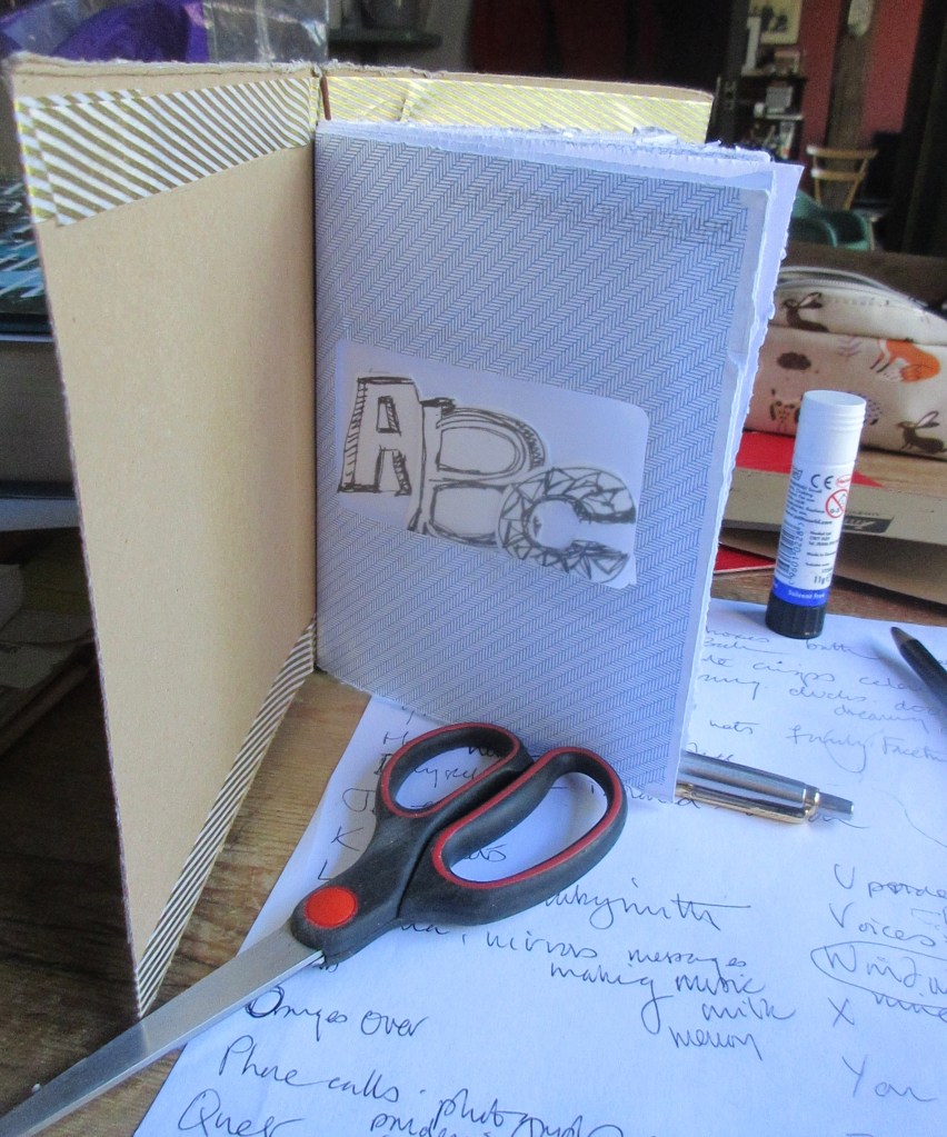 Quite often we can write something quickly. And that is a good thing. Sometimes, frequently, in fact, it is worth spending a bit more time on things. I made my pages from envelopes [because they hold letters -for an alphabet – sorry, bad joke]. I chose eight pages. That is four envelopes, front and back. I found a thin card envelope which had held a book, and I put tape over the words on the card. I decided not to design the cover until later. I have decided that this will be a special book about these unusual days, so I am going to just take things slowly.