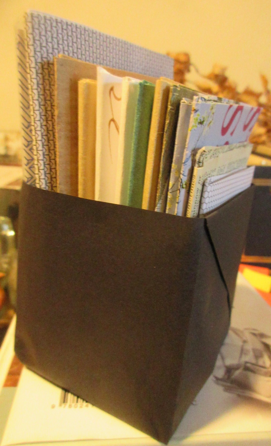 We thought you might like to make a little box of folded books. You could give them as a gift, or you could store up a library full of poems or stories or memories. Here is how to make an origami or slit book: Take a rectangle of paper – A4 will do. A3 is … Continue reading A little folded book