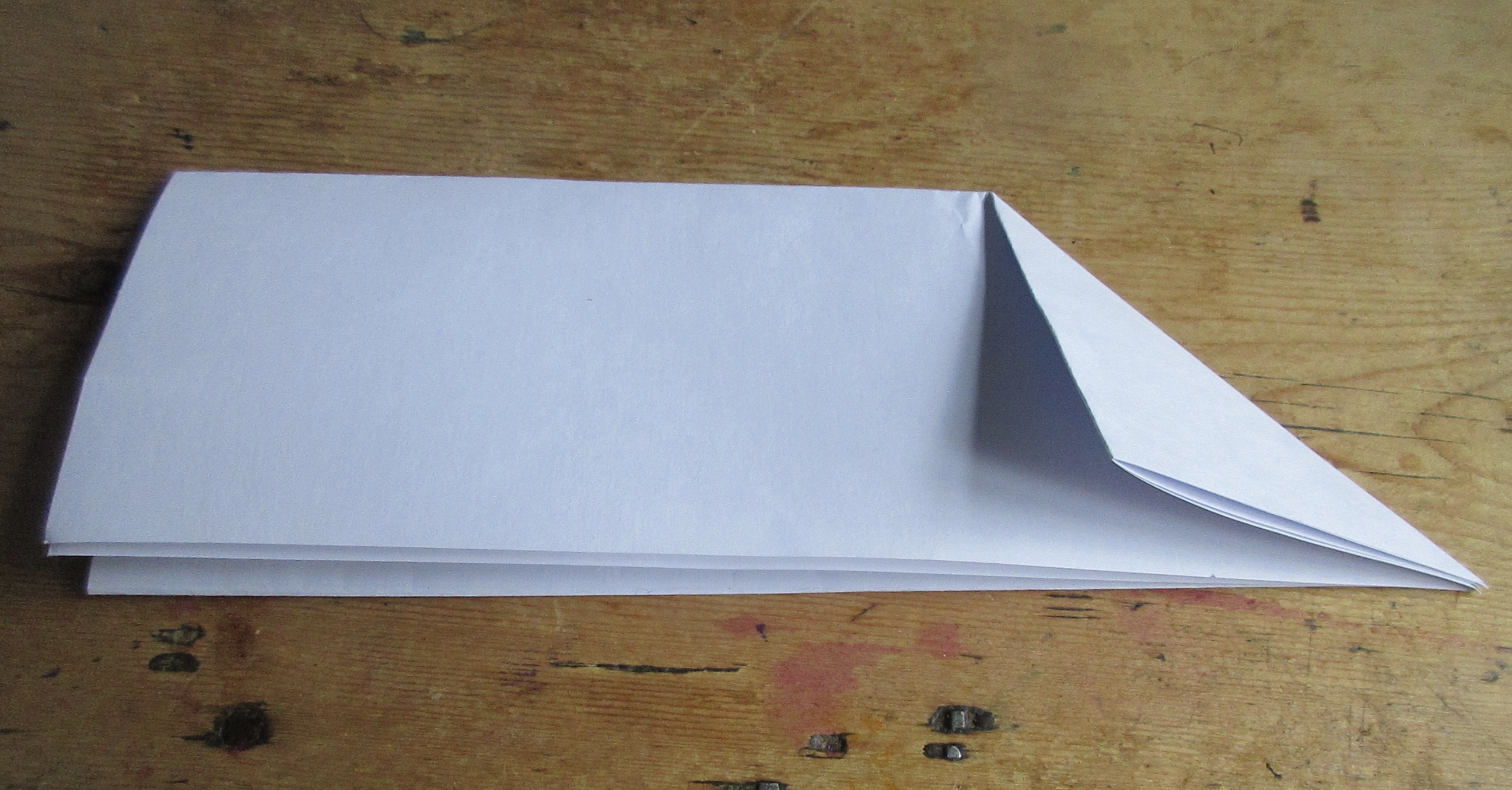 - Unfold the sheet so that it is just folded in half once.